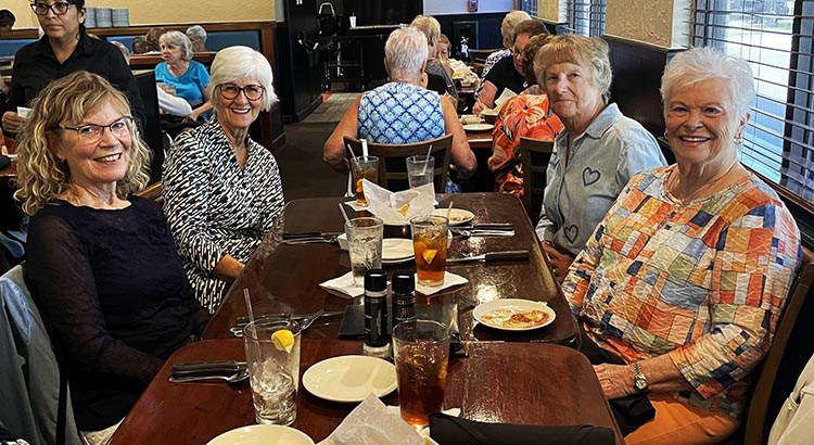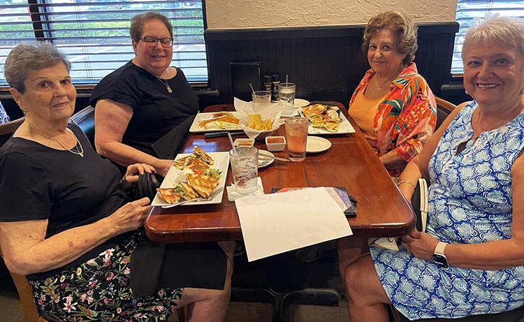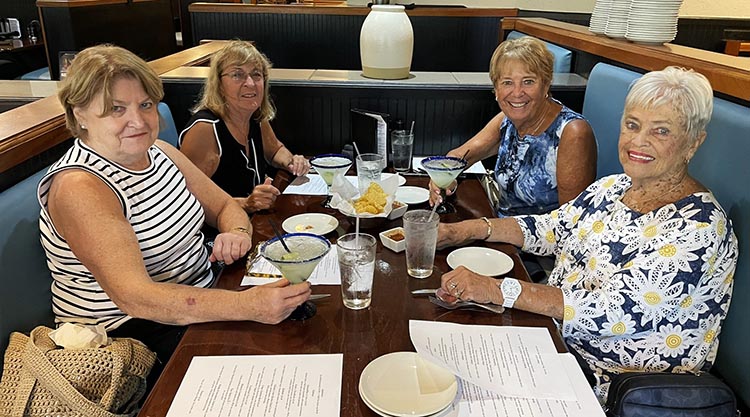 ONCE A MONTH DURING THE SUMMER, HP RESIDENT KITTY JEDD HAS BEEN HOSTING LUNCHEONS AT VARIOUS LOCAL RESTAURANTS FOR LADIES WHO ARE ON CAMPUS DURING THOSE MONTHS. ON TUESDAY, AUGUST 12, 42 LADIES JOINED THE “LUNCH BUNCH” GATHERING AT THE CANTINA LAREDO IN FORT MYERS. THERE WAS DELICIOUS FOOD AND TONS OF CAMARADERIE! PHOTOS BY K.C. GROSSE.