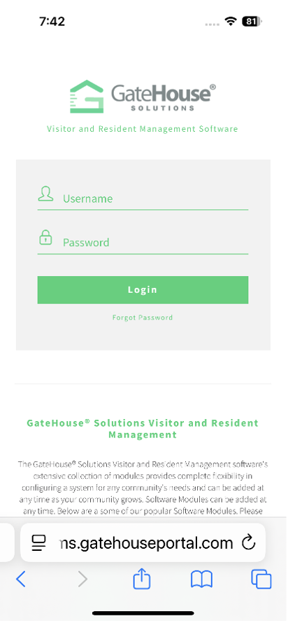 Something new: In addition to the above, HP just announced that the Visitor Management System is now accessible through the GateHouse Solutions® Resident Phone App. This app allows you to conveniently manage your visitor list and view your account profile directly from your smartphone.