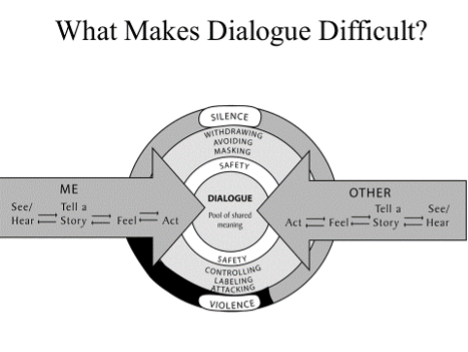 We can walk through the Dialogue Model from Crucial Conversations*, in order to learn how conversations go from dialogue to difficult.