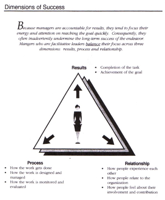• Balance among results, process, and relationship. A good leader understands that while completion of the task is of utmost importance, it cannot be done without having a clear and understandable process as well as supportive relationships with others.