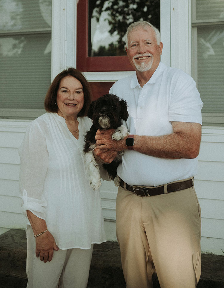 NANCY AND GARY WITH THEIR SCHNOODLE, SPARKY, IN EDINBORO, PA