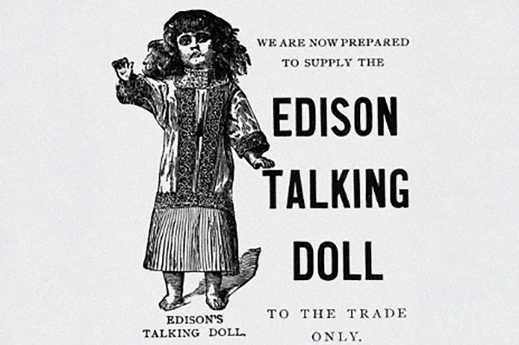 Unfortunately, Edison’s dolls didn’t speak so much as screech. Due to the low recording volume, the women voicing the rhymes were required to scream into the recorder, resulting in creepy recordings that upset customers. The dolls were also plagued by durability issues and were prone to breaking. Parents complained, children were terrified, and many of the 2,650 dolls sold were returned. Within weeks, Edison withdrew them from the market, ruefully calling them his “little monsters.” Today, Edison’s “monsters” are considered rare collector’s items and have been displayed at the Smithsonian.