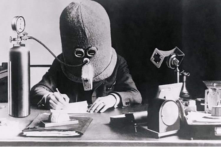 Made of wood and felt, the helmet completely enclosed the wearer’s head, leaving only narrow slits for vision. After realizing that people became drowsy inside the helmet after 15 minutes, partly due to oxygen deprivation, Gernsback added an oxygen tank connected to the helmet by a tube. He claimed the device was 75% efficient and predicted it would be a “great investment” for anyone in need of focus. Though the Isolator never caught on, its spirit lives on in noise-canceling headphones and focus apps.