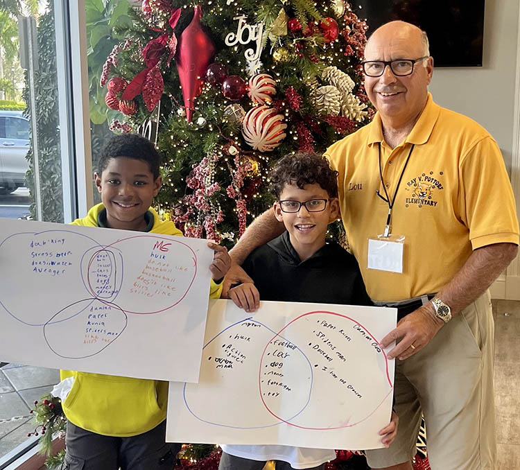 On Wednesday, December 17, volunteers from Heritage Palms met with 20 fifth-grade boys from Pottorf Elementary for the first Boys2Men session of the school year. The session focused on holiday fun and the value of friendship, with students reflecting on their relationships and creating Venn diagrams to illustrate what makes a great friend. The boys also proudly received their Pillars of Integrity T-shirts to wear at school and at home.