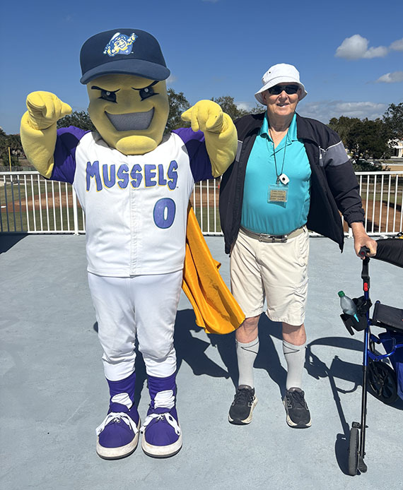 PICTURED WITH THE MIGHTY MUSSELS MASCOT.
