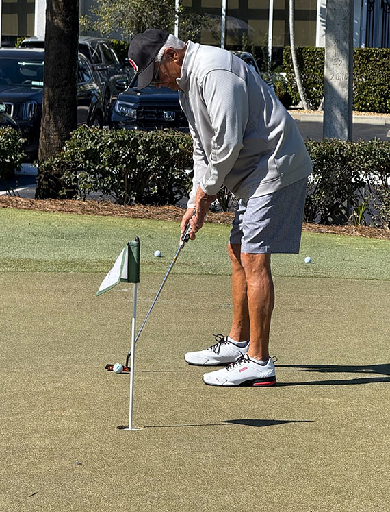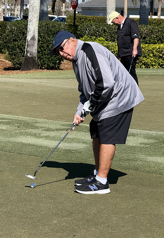 From Mike McCarthy: The “Puttmen” are out on the practice putting greens every Wednesday and Friday participating in their “putting for quarters” game. Regardless of the weather, we’ve had anywhere from eight – eighteen people show up to putt, with some excellent putting demonstrated by everyone.