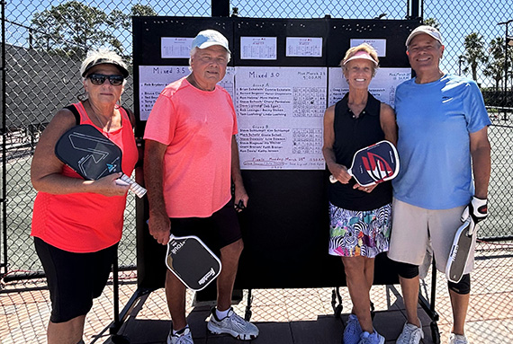 MIXED DOUBLES 4.0 + LEVEL PLAYERS(L-R): GREG & LINDA JURASOVICH, JAN CARMITCHEL, AND BRYAN DEAN