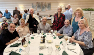 DICK AND K.C. WITH THEIR DAUGHTER, LARA POULIOS. Dave Olman and Jim Wilson organized a “send-off party” for Dick and K.C. Grosse in the Palms Dining Room on January 6. Friends, both inside and outside HP, joined them to wish them luck in their new home at Cypress Cove. FRIENDS ENJOYING THE EVENING.